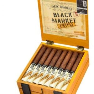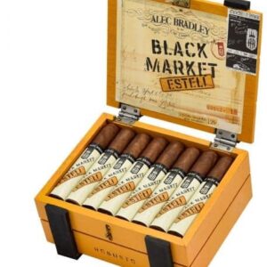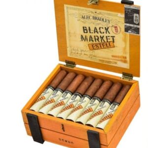 Alec Bradley Black Market Estelí Torpedo is really a stand-up, law-abiding cigar—and a very satisfying one as well. Black Market Esteli is a full-bodied cigar comprised of a chestnut-colored Nicaraguan wrapper, brimming with fillers from the same country. This ’93’ Rated cigar is everything enthusiasts have come to expect from Alec Bradley. Full Flavored cigars offers complex notes of leather, pepper, and cocoa.