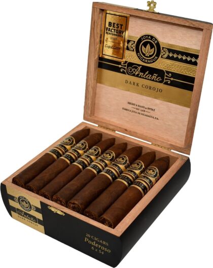 Joya De Antano Dark Corojo is the embodiment of the Nicaraguan “power” cigar. The dark, oily, seal brown capa serves as a foreshadowing for the extra full bodied flavors of it’s complex and pungent blending of mature, locally cultivate leaves. The full Nicaraguan tobacco flavor is accented with hints of unsweetened cocoa and nuts.