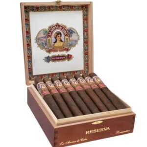 La Aroma de Cuba Mi Amor Reserva received a tremendous 94-rating from Cigar Aficionado and is an enhanced edition of the original Mi Amor, created by legendary cigar-maker, Jose ‘Pepin’ Garcia in Estelí, Nicaragua. An extensively fermented San Andrés Oscuro wrapper leaf conceals a hearty interior of well-aged premium Nicaraguan binder and filler tobaccos. A handful of traditional shapes express the blend with an ample rumination of flavor. Bold but perfectly balanced taste emerges in a refined and brilliantly lingering finish.
