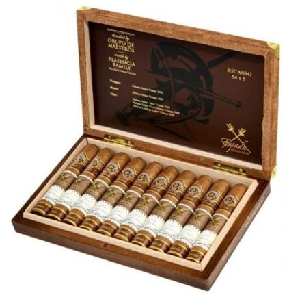 The Espada by Montecristo combines centuries of cigar making knowledge with lifetimes of passion by uniting the two greatest names in the premium tobacco industry. These hand rolled cigars are made with 100% vintage Nicaraguan tobaccos specially aged by the Placencia family and expertly blended by the world famous Grupo de Maestros. Made from a blend of Habano Jalapa Seco Vintage 2008, Habano Jalapa Viso Ometepe Vintage 2008 and Habano Condega Ligero Vintage 2008 fillers, a Habano Jalapa Vintage 2009 binder and wrapped with a Habano Jalapa Vintage 2010 wrapper.
