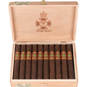 Foundation The Wise Man Maduro premium cigars feature a deep brown, and oily, Mexican San Andrés maduro wrapper over a Nicaraguan binder, and aged long filler tobaccos from Condega, Estelí, and Jalapa—three of the top growing regions in the country. The Wise Man Maduro has earned an impressive 95-point rating and was named the #3 Cigar of 2018. The Wise Man Maduro is a cigar that definitely stands out on its own. The bold Nicaraguan blend combines both sweet and spicy flavors. This cigar boldly presents espresso, sweet roasted nuts, leather, cashews, cacao, and black pepper all at once.