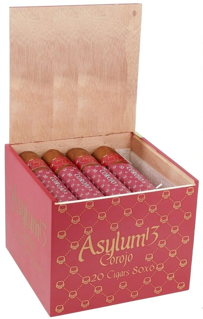Asylum 13 Corojo 680 cigars are medium to full-bodied and have a rich tobacco core with a sophisticated flavor profile. They feature notes of earth, espresso, and cedar complemented by a silky sweet finish and a refreshing citrus undertone. This series exemplifies the brand’s dedication to crafting bold and innovative premium smokes.