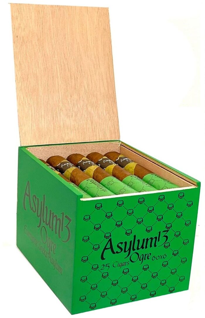 Asylum 13 Ogre 6×60 cigars are a very unique and interesting choice in the premium cigar market. We wouldn’t expect anything less from a brand that’s known to push the boundaries of what a cigar can do and be! These monumental smokes feature a distinctive barber-pole wrapper that combines a vibrant green Candela leaf with a rich Habano leaf. This creates an eye-catching design that adds to a complex and intriguing flavor profile.